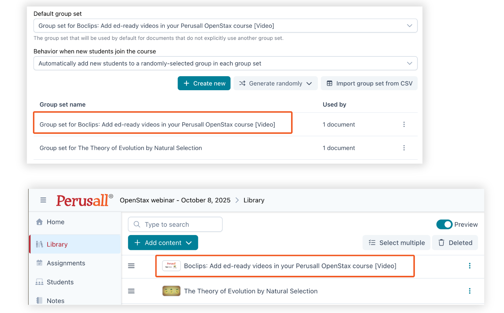 For long-time Perusall users, this choice is similar to Specify groups.