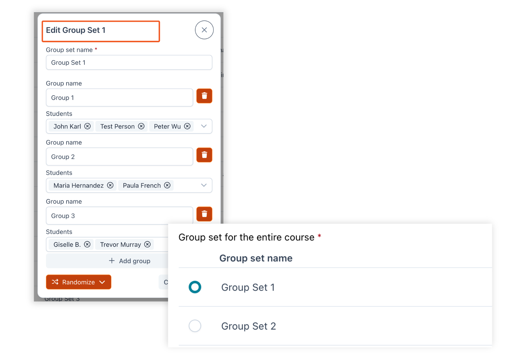 However you choose to set up your group sets, you can also decide how to treat students who join your course later on. We suggest selecting Automatically add new students to a randomly-selected group in each group set so new students will find themselves in a group with other students to talk to, but if you prefer you can keep new students isolated until you determine how to group them.